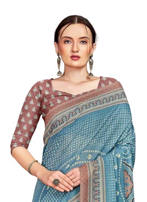 Women's Jacquard Cotton Silk Blend Banarasi Bandhani Fusion Style Woven Saree with Unstitched Blouse