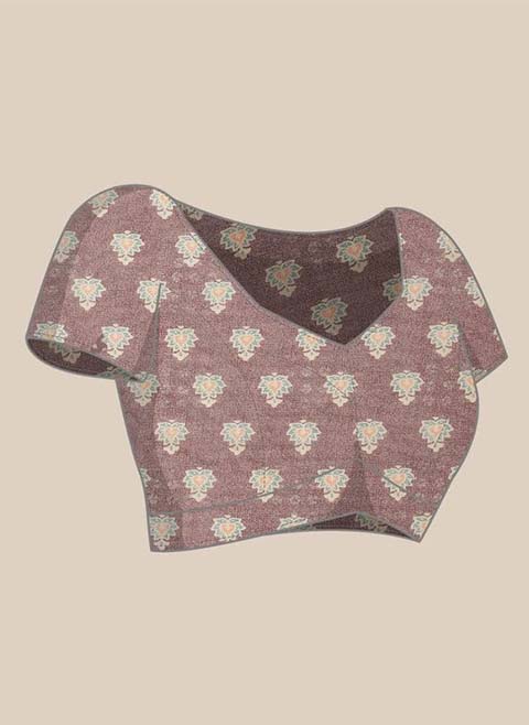 The saree comes with an unstitched blouse. The blouse worn by the model may just be for modeling purposes. Look at the image to see how the blouse looks.
