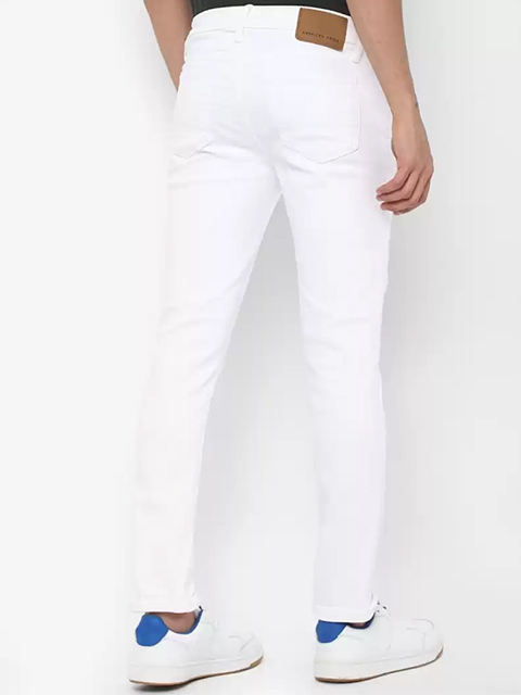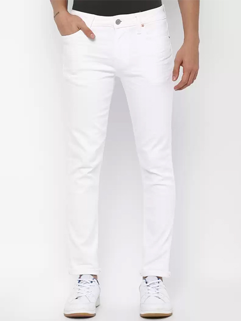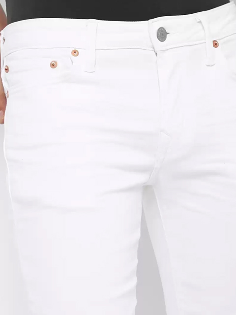 Dress up your everyday look with these white jeans. With its multi-pocket design (2 scoop pockets, 1 coint pocket, 2 back pockets), this shirt has a faded wash with whiskering for a fashionable look. Featuring a zipper fly, button closure and a skinny fit.