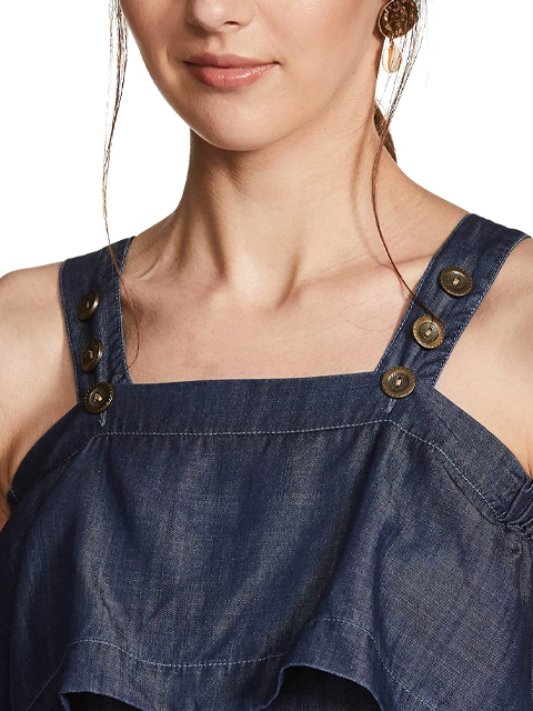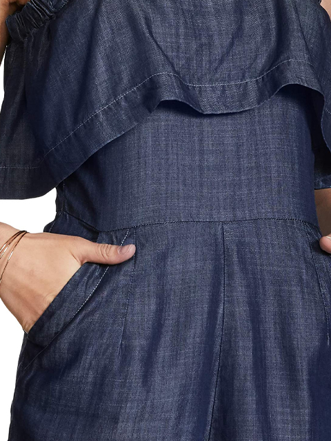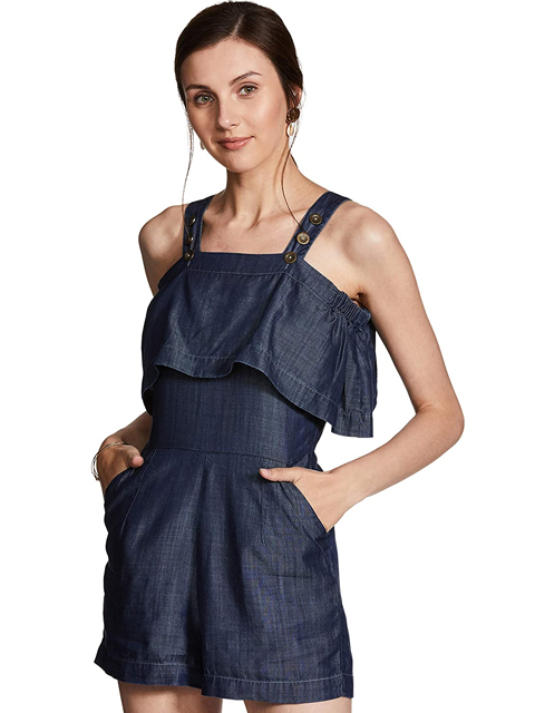 Add a touch of bohemian chic to your collection with this playsuit. It comes with a washed pattern that makes it look stylish, while the square neck and cold shoulder sleeves provide a proper fit. This playsuit will ensure a relaxed feel and it is skin friendly. Above all, the use of a good quality fabric promises to keep you at ease.