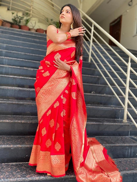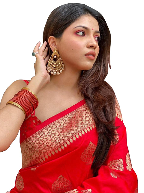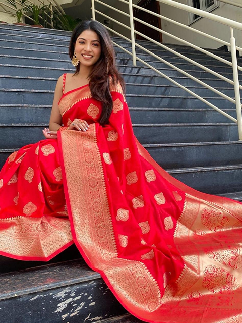 Disclaimer: The saree comes with an unstitched blouse piece