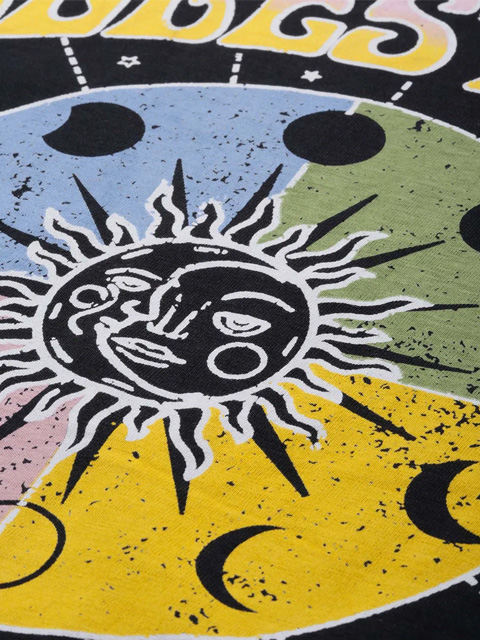 Difference Of Opinion solid black printed oversized t-shirt combines style and comfort. Cotton shirt with round neck and striped pattern.