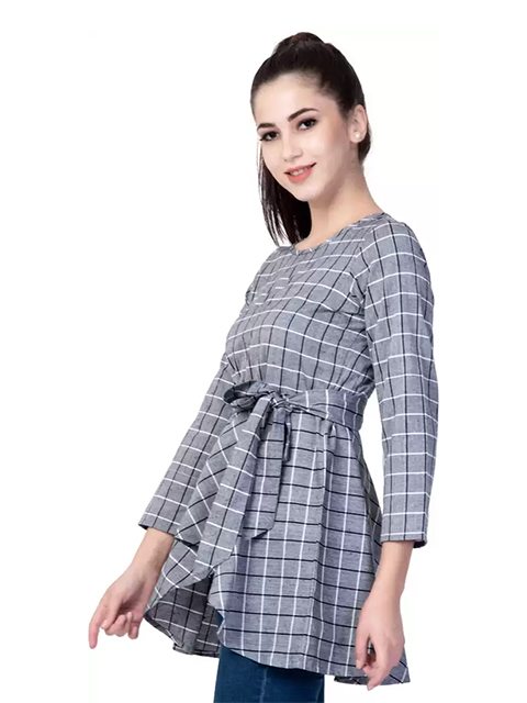 Casual Regular Sleeves Checkered Women White, Black, Grey Top