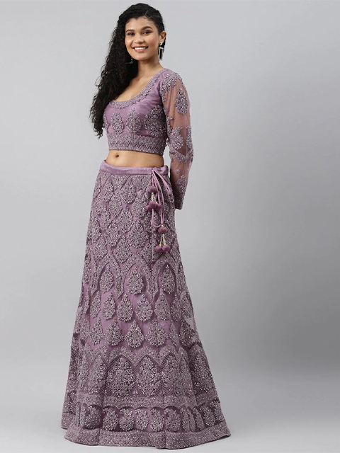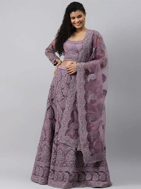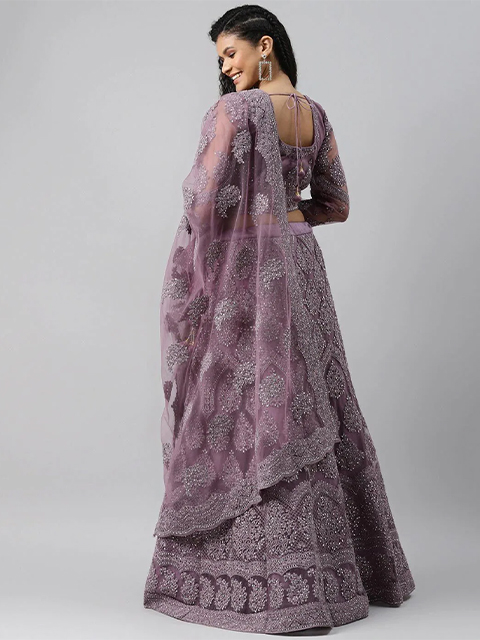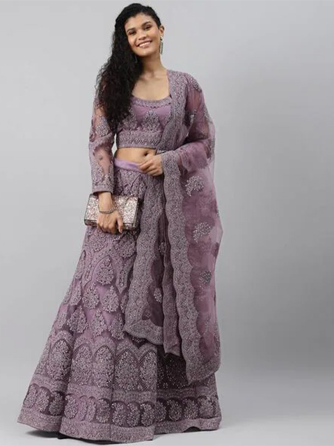 Purple embroidered lehenga choli with dupatta, sequinned