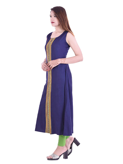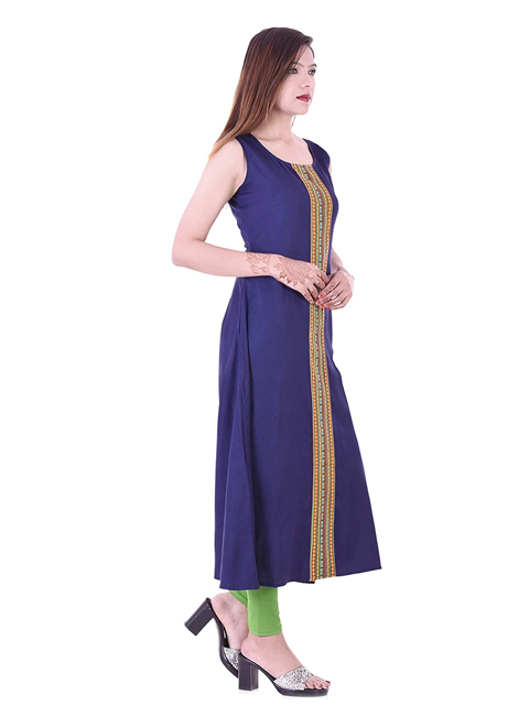 Add zing to your feminine charm with this Round-neck kurta. Tailored in fine rayon for natural sheen and a superb combination of softness, comfort and drape, it's print pattern and a line shape make it a versatile choice for many an occasion. Pair it with matching bottoms for an elegant look.