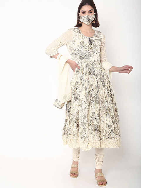 Package contains: 1 kurta, 1 pant, 1 dupatta, 1 mask