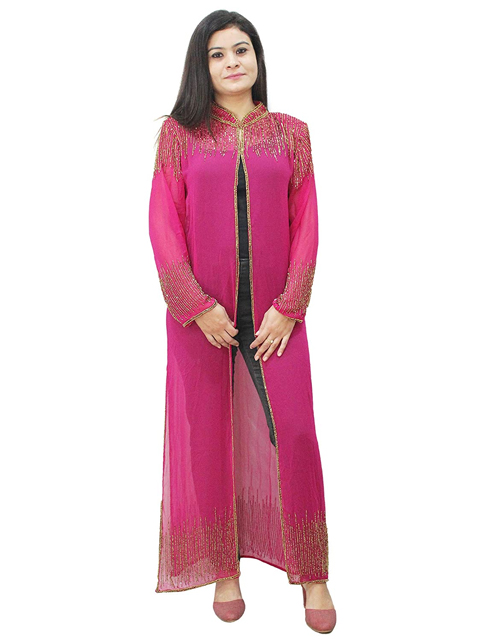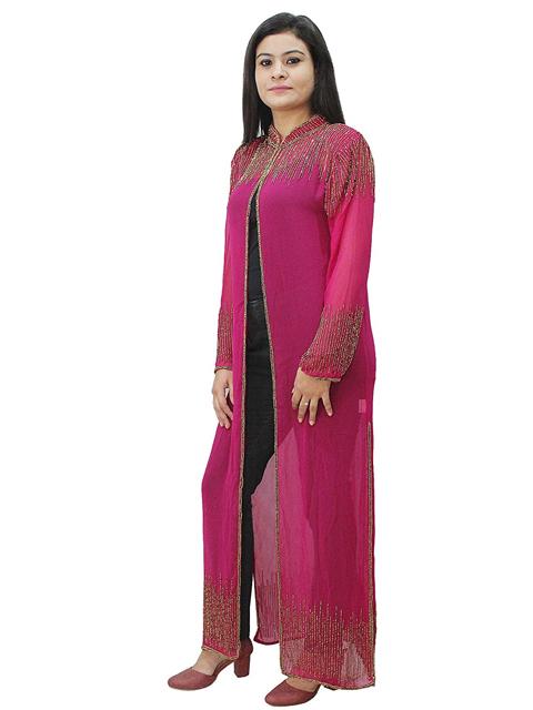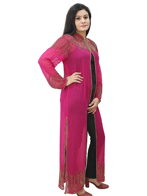 Dark Pink embellished long cape can go on anything to make you stand out