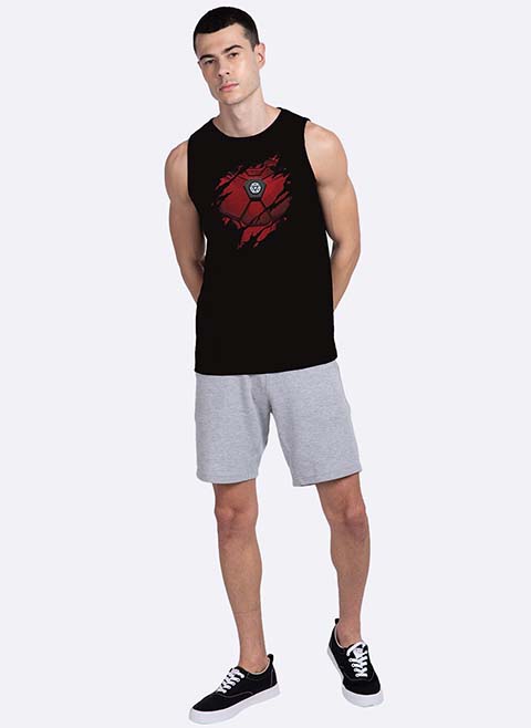 Men Black & Red Iron Man Of War Printed Innerwear Vest