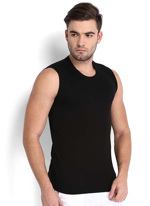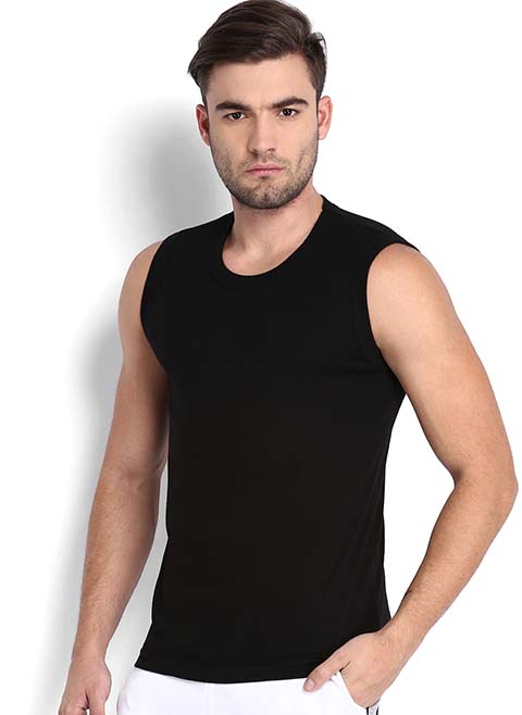 Men Black Solid Gym Vest