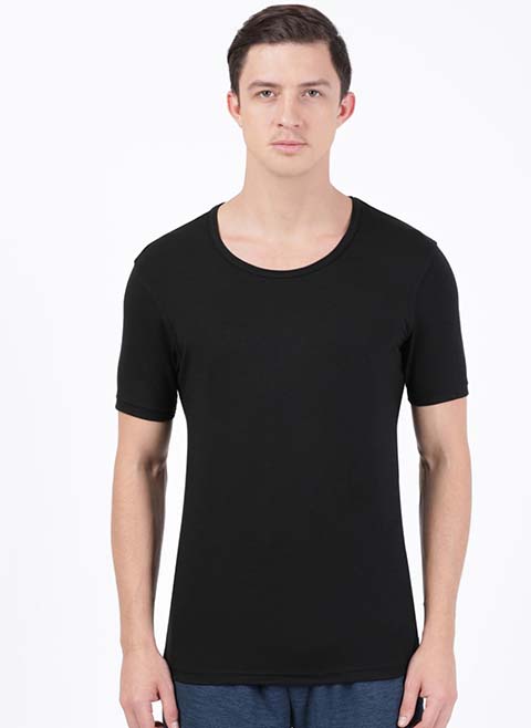 You'll love this men black solid half sleeve thermal
