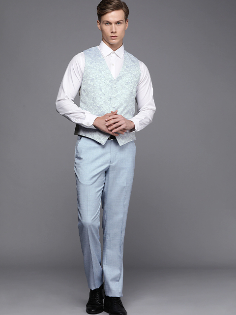 Navy blue solid mid-rise formal trousers, has a waistband with belt loops, zip fly with a button closure and 4 pockets