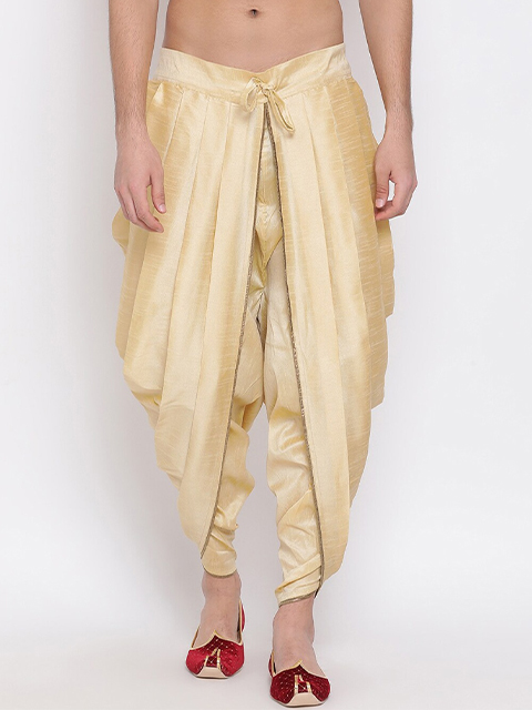Gold-Coloured mid-rise solid dhoti pants has a drawstring closure