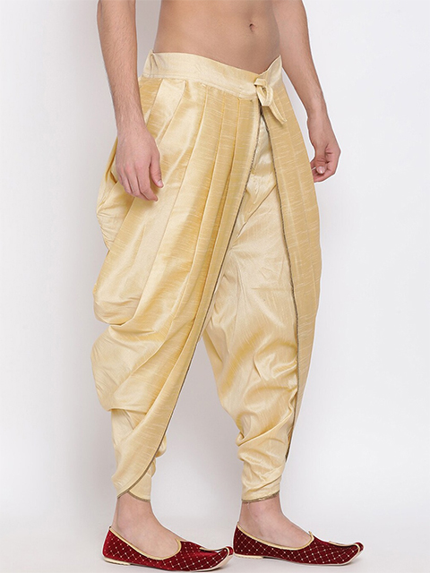 This dhoti brings to you this stylish yet comfortable dhoti pants. Pair it with a juti or a mojari for the royal look.