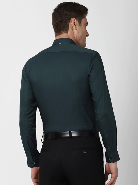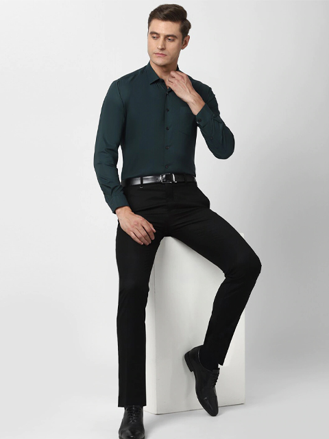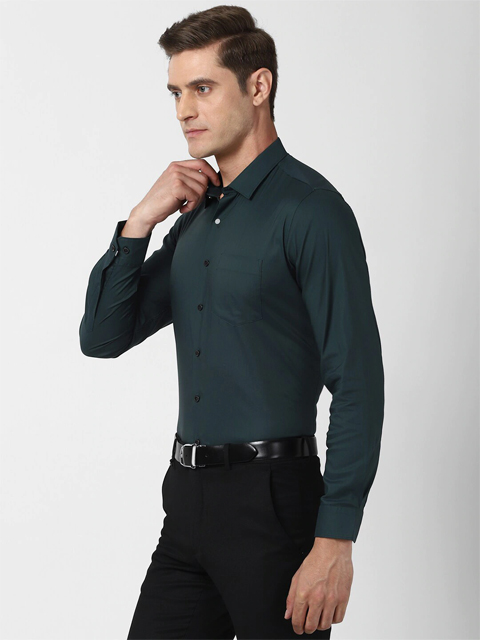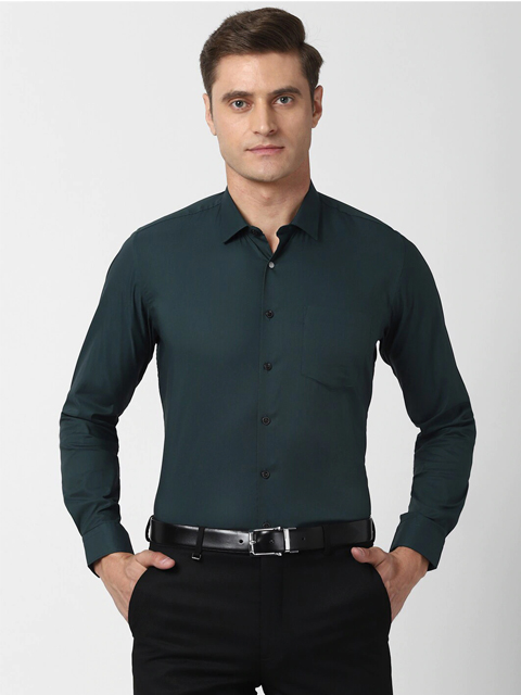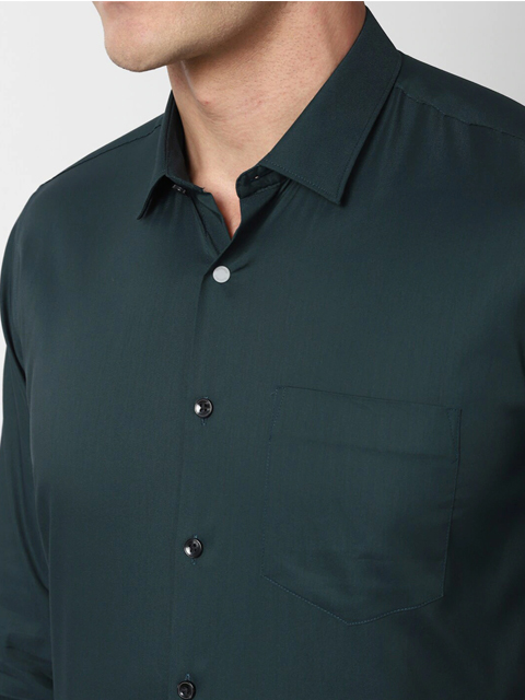 Green solid opaque Formal shirt ,has a spread collar, button placket, no pocket, long regular sleeves, straight hem