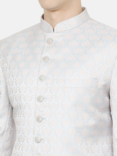 Grey Printed Blazer, has long sleeves, button closure
