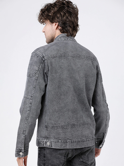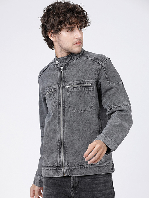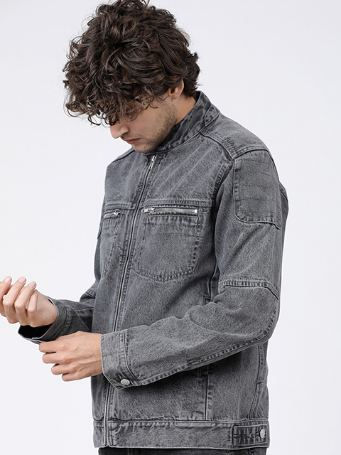 Top off your personal wardrobe with this trendsetting grey jacket. When you're going to a concert with your buddies, layer your favourite tee with this jacket.