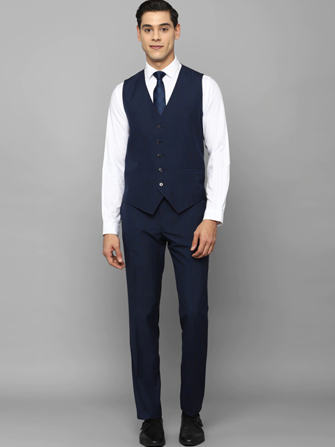 Navy blue self-design waistcoat, has no sleeves and button closure.