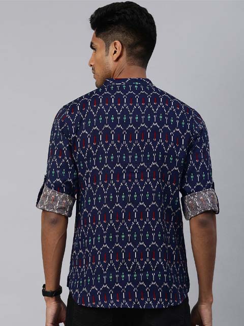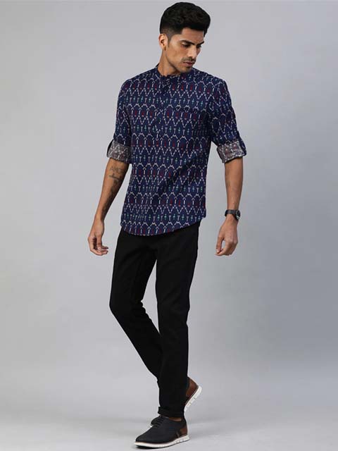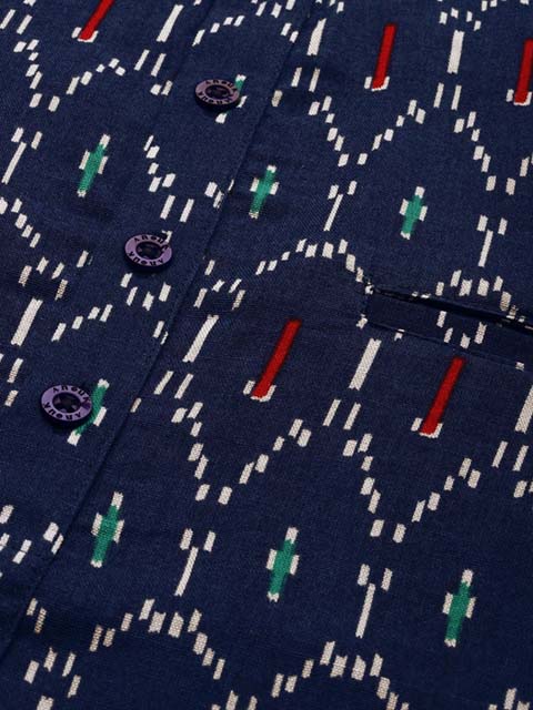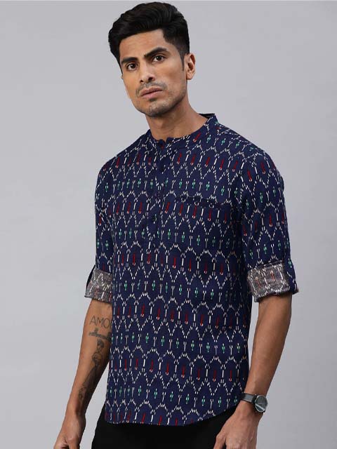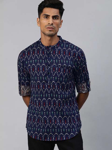 You'll love this men Navy Blue & White Ethnic Printed Cotton Linen Straight Kurta