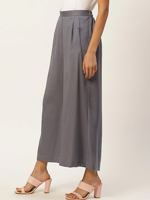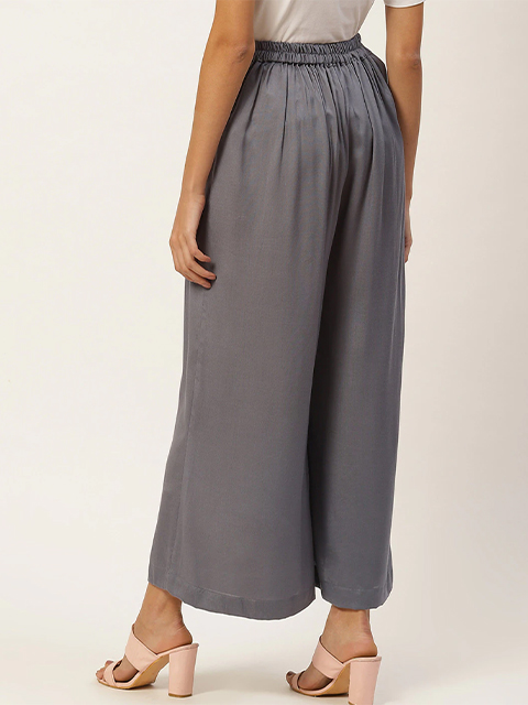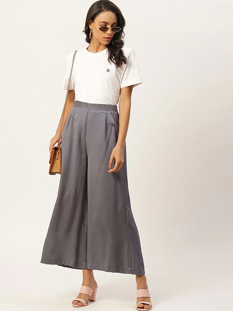 With wide legs that give it a breezy look, style it with a solid crop top and embellished flats for a chic daytime look.