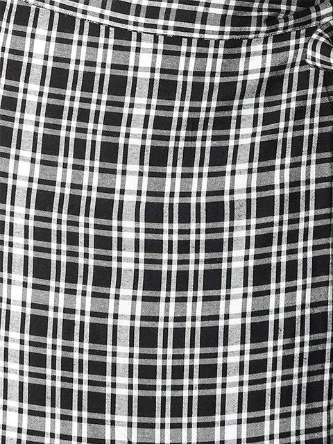 Charcoal Grey and Black checked flared skirt, has an elasticated waistband with zip closure, flared hem and a front slit. This skirt looks incredibly adorable. Pair it with a top and boots when you are out on a picnic.