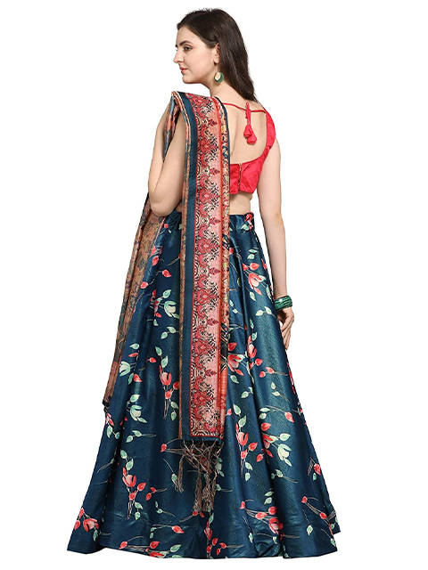 Lehenga Fabric : Poly Silk || Choli Fabric : Raw Silk || Lehenga Dupatta Fabric : Chinnon || Lehenga Inner Fabric : Poly Cotton || Wash Care : Dry Clean