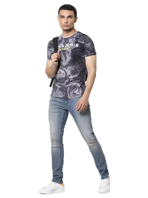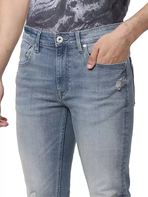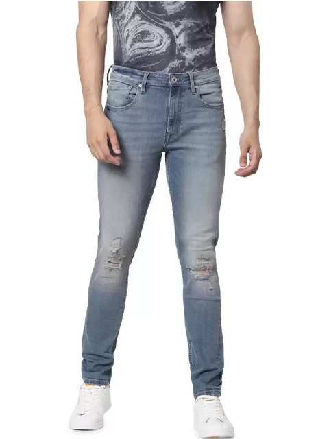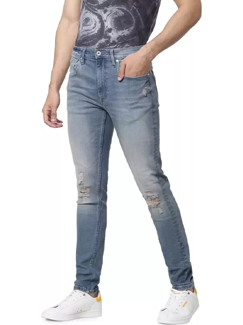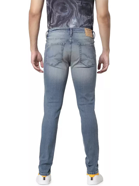 Solid Skinny Fit Jeans are the go-to denim for any occasion. The fit is slim but not too tight, and the wash is semi-soft. These jeans are perfect for wearing with a T-shirt or a button-up top on a date night, or you can dress them up with a blazer. The jeans are men's blue jeans.