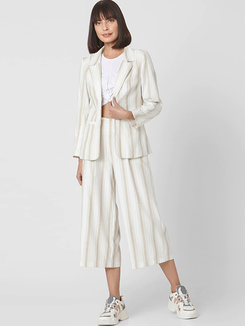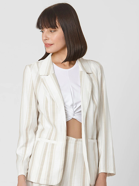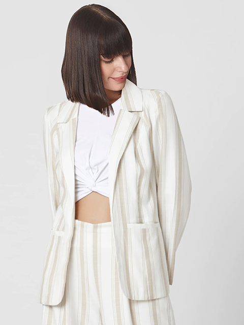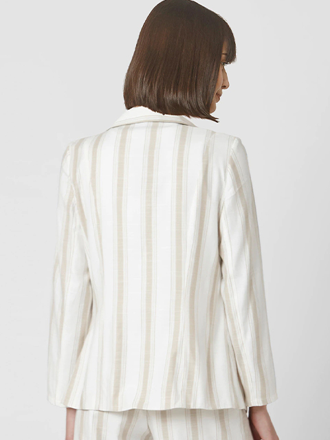 With this classic line of striped casual jacket, you can add a touch of edge to your look. Its soft, supple fabric and versatile hue only enhance its chic appeal.