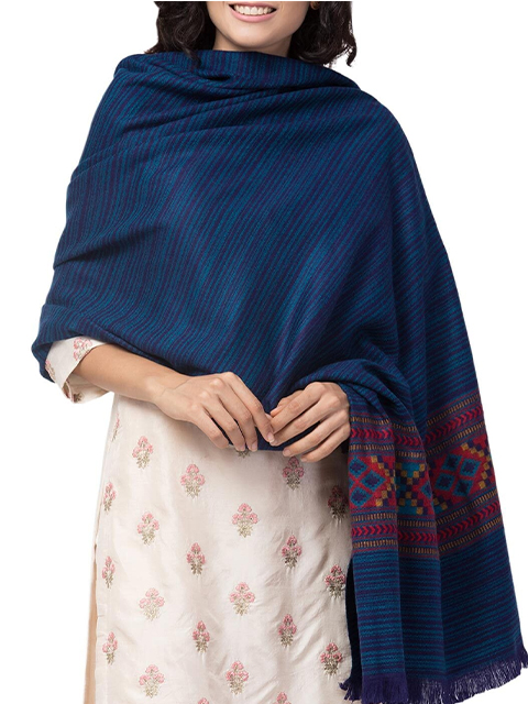 Transform in an instant into an icon of elegance with this woven acro woolen shawl from Safaa. Style it with right accessories for that complete ethnic look.