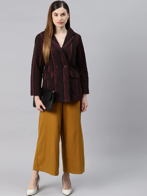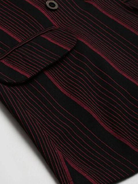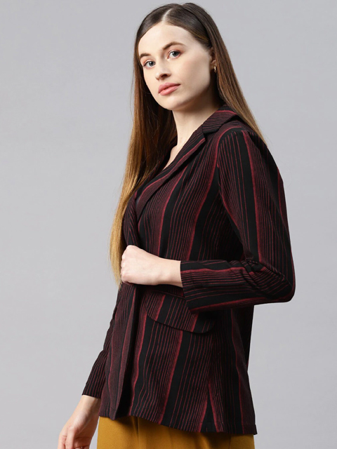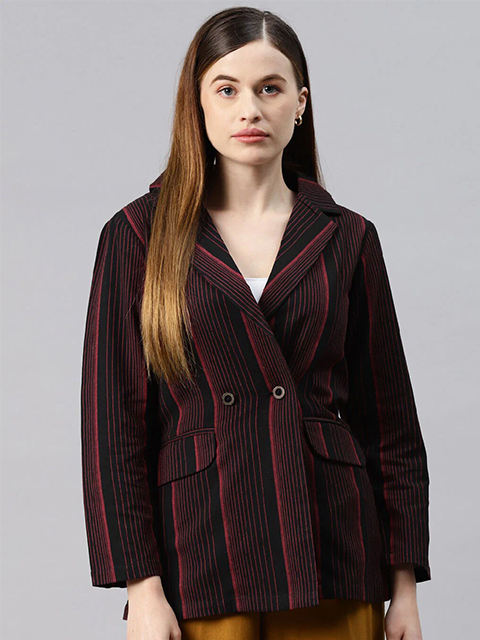 Featuring a slim fit, this cotton fabric blazer is light in weight. There is an elegant enchantment in this blazer, which features a notched lapel, full sleeves, and a striped pattern.
