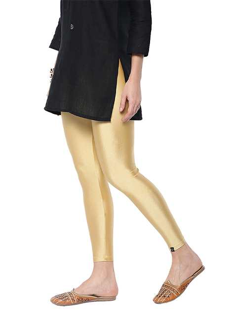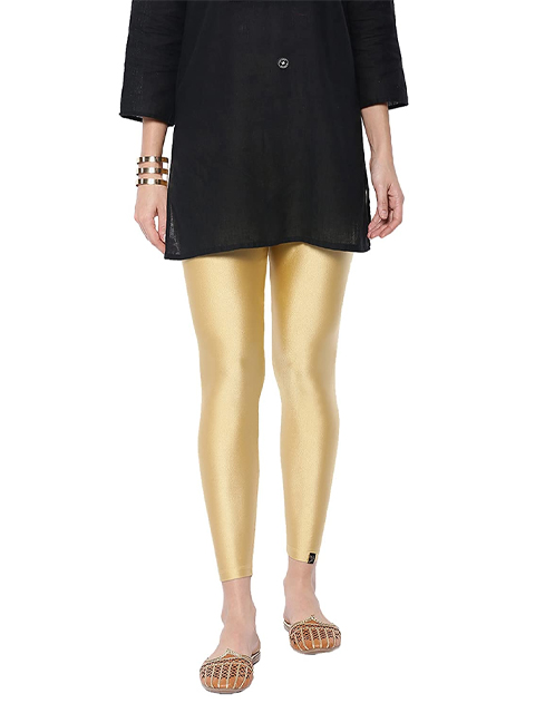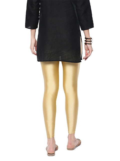 Women Gold-Toned Solid Ankle-Length Shimmer Leggings