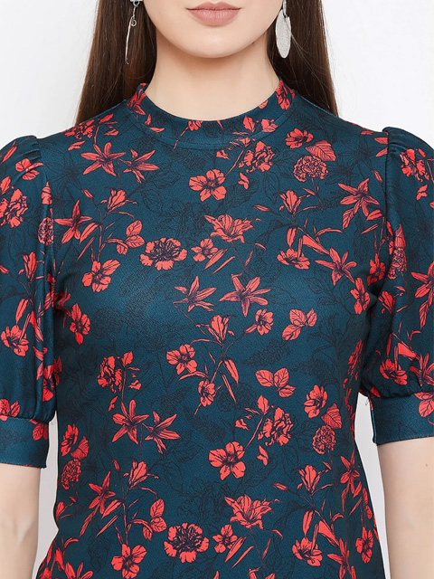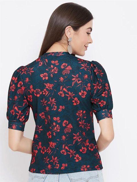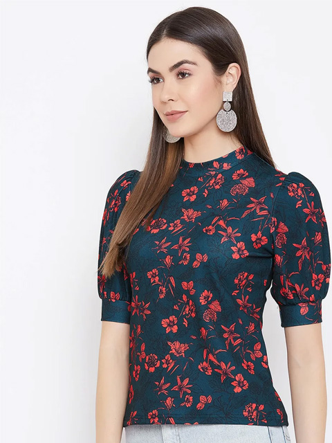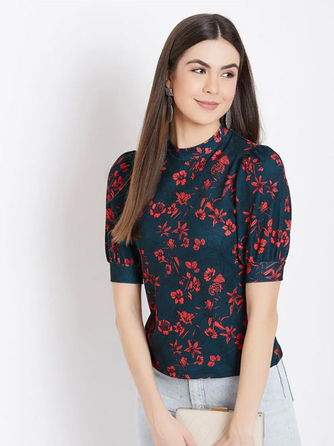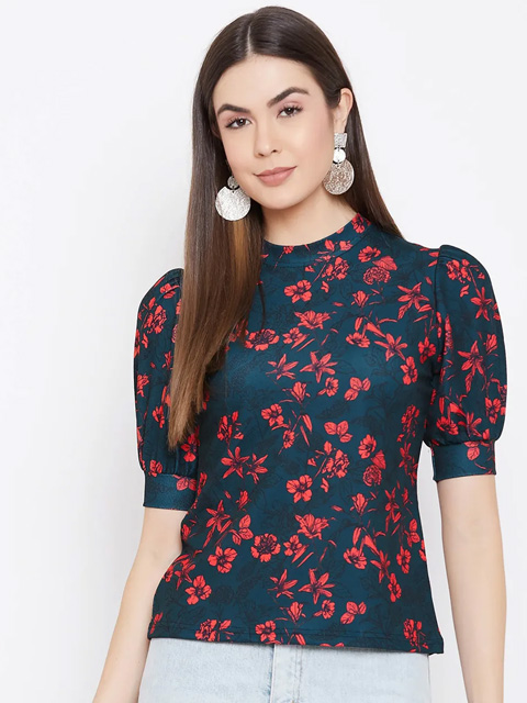 Stretchable high neck top/t-shirt that can work with jeans or high waist pants or palazzo. The puff sleeves are super on trend and extremely flattering. Length of the top is regular length and not cropped. Comfortable fit that can be worn from day to night and looks very stylish. It is a great versatile top to wear to college, lounge around at home or wear to a party. Wrinkle free fabric makes it travel friendly. Its quick drying fabric helps avoid sweat patches. The premium fabric is color bleeding resistant thereby making it long lasting.