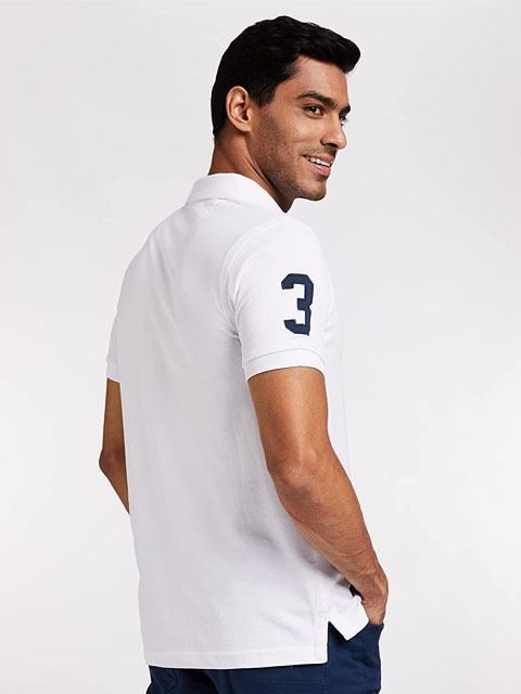 This shirt gives the traditional polo shirt a statement touch. This breathable cotton shirt has a ribbed collar and half sleeves. On a warm day, wear it with shorts and sandals.