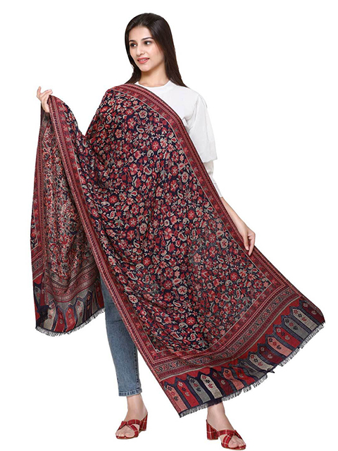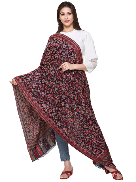Transform in an instant into an icon of elegance with this woven acro woolen shawl from Safaa. Style it with right accessories for that complete ethnic look.