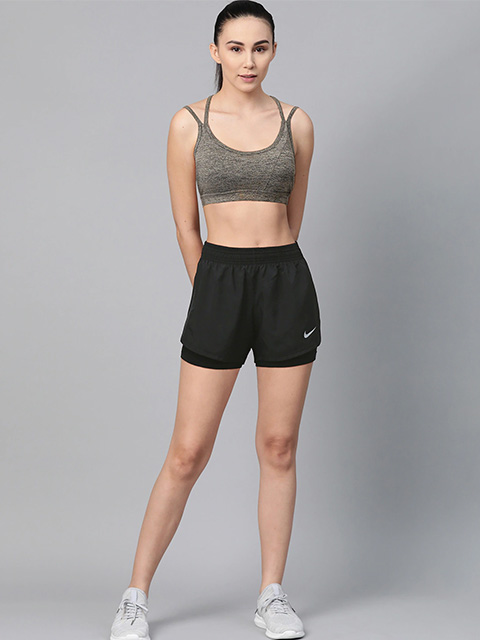 Black 2-in-1 Solid Dri-Fit Running Shorts for Women