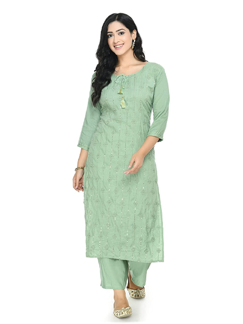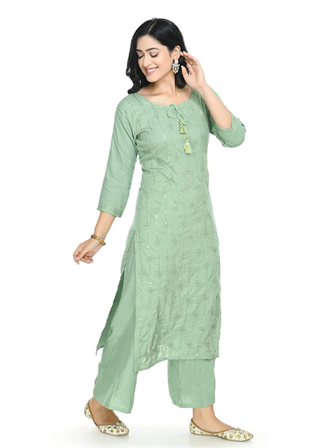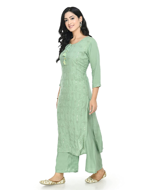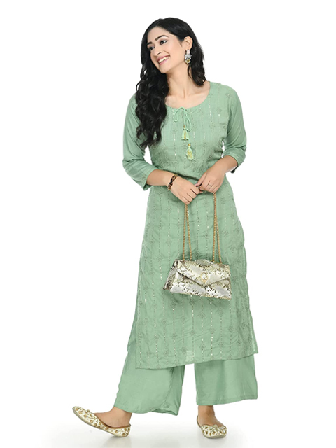 Green woven design Kurta with Palazzos