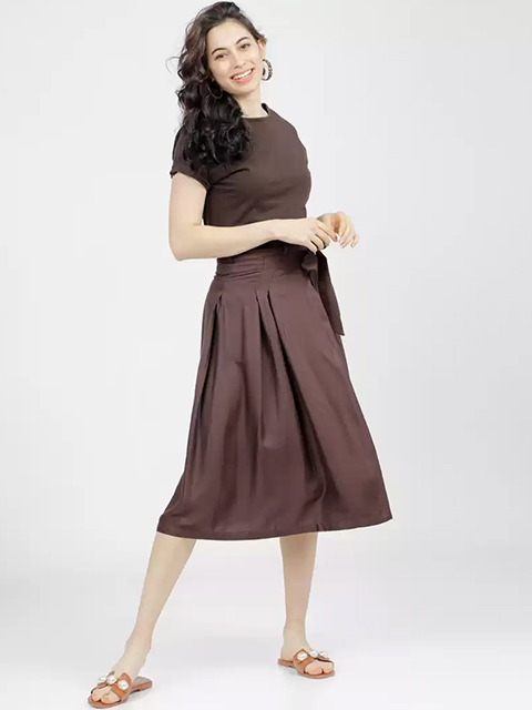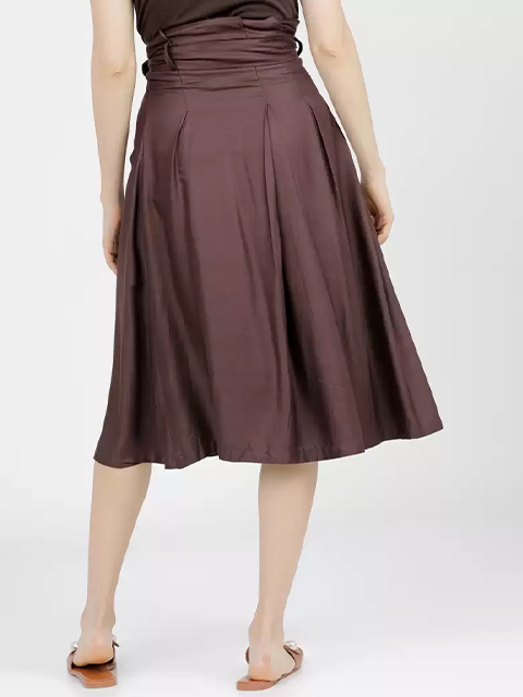 Women Brown Solid A-Line Midi Skirt