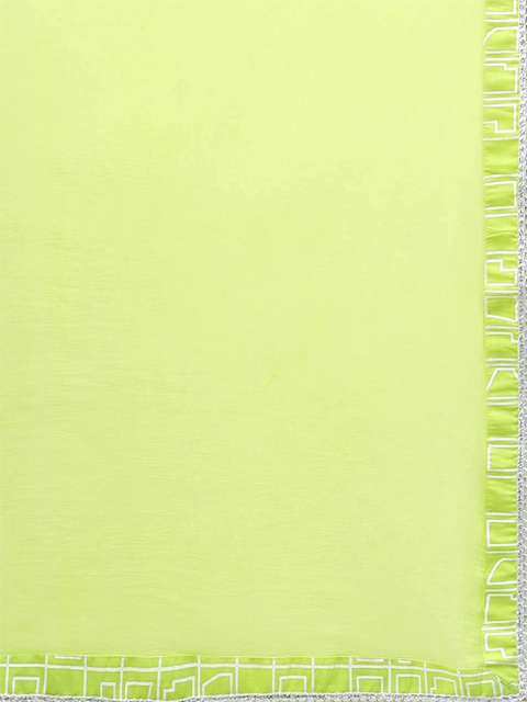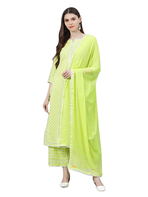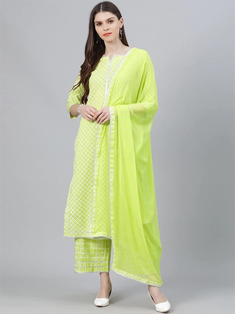 Green Embroidered A Line Cotton Blend Kurta with Palazzo and Dupatta (Set of 3)