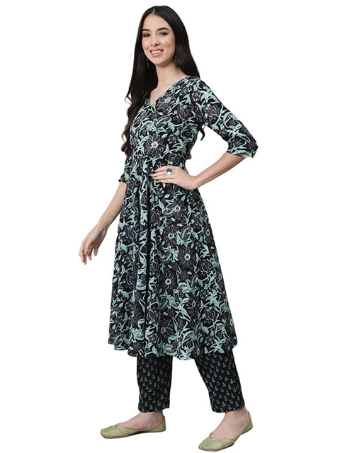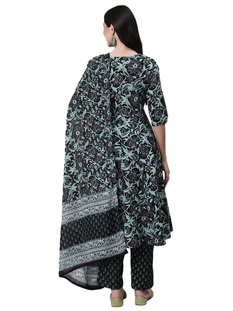 Curate a stunning look by wearing this blue kurta and pant set with dupatta. Tailored to sartorial perfection from premium quality fabric, it assures a soft and soothing touch against the skin. The V collar augments its design. The three-quarter sleeves further speak for itself.