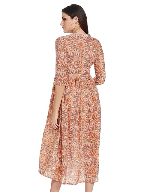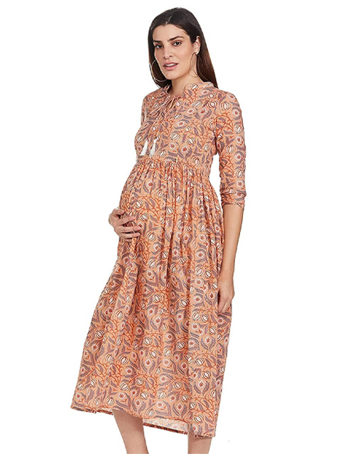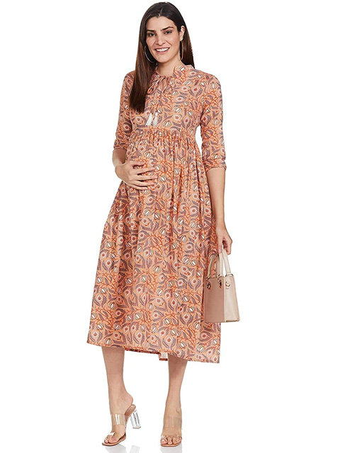 Fit and Flare Maternity and Feeding Dress in Beige Color