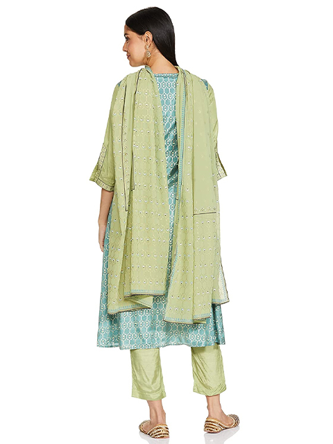 Kurta And Dupatta Set In Green Printed Fabric