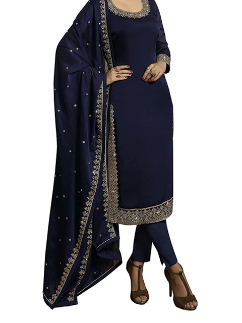 Blue solid Kurta & DupattaKurta design:Solid