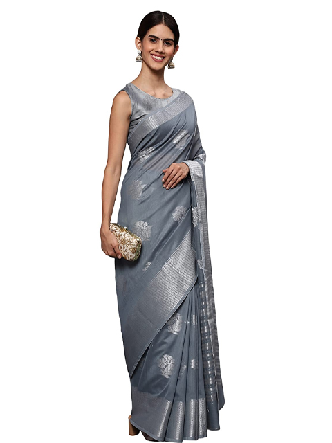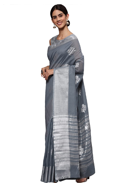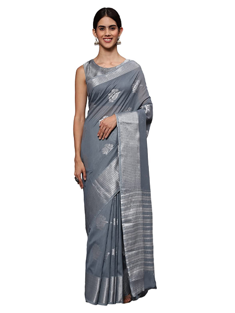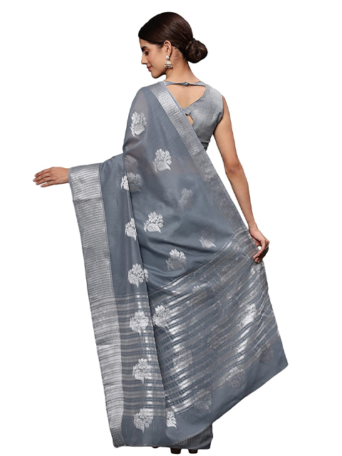 Women Silver Tissue Silk Saree with Unstitched Blouse