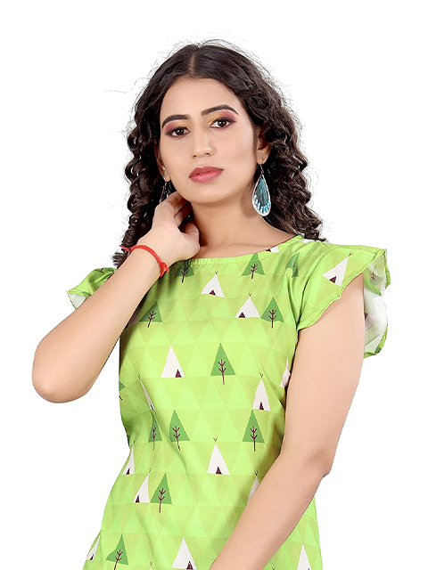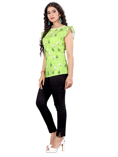 Lime Green Floral Pure Cotton Top