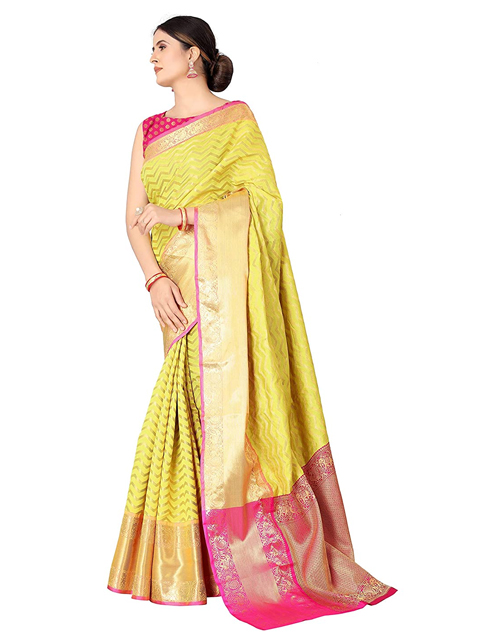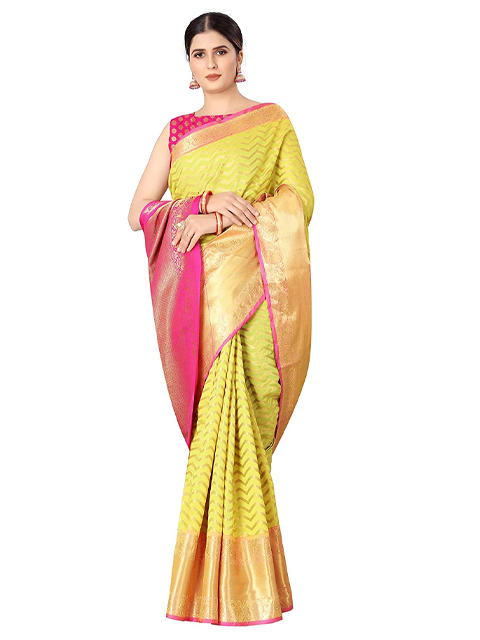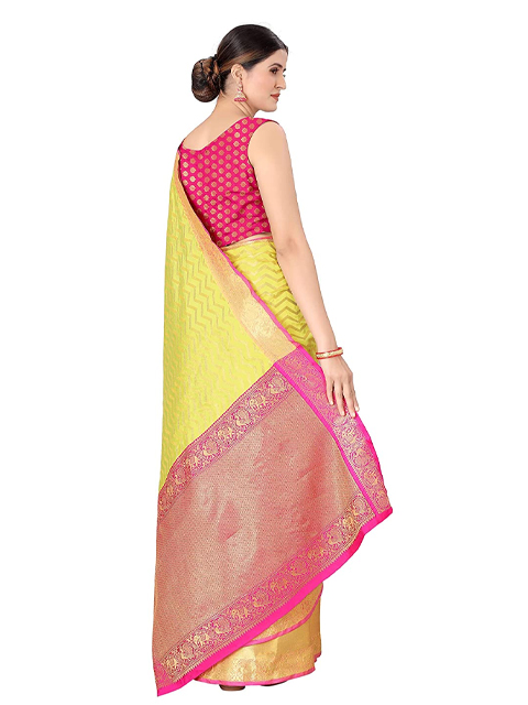 The blouse worn by the model might be for modelling purpose only. Check the image of the blouse piece to understand how the actual blouse piece looks like.